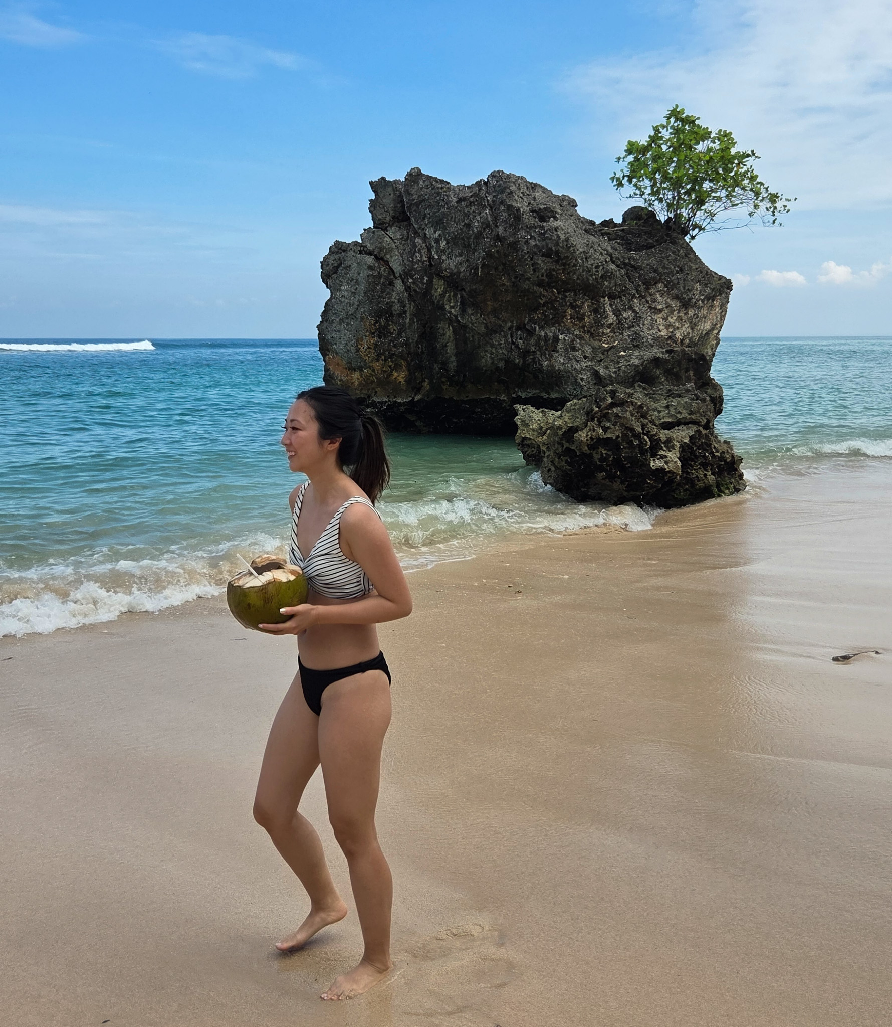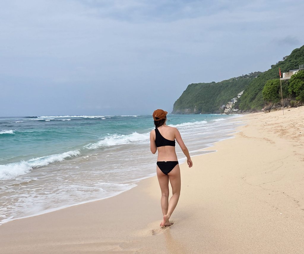 Pick up your favorite coffee and head on over to the famous Padang Padang beach. The criticism of this beach is that it’s crowded. But if you go nice and early in the morning, you’ll easily find a spot to yourself on the beach. The entrance to the beach is clearly marked from the street and there’s a set of stairs you’ll need to walk down to get to ocean level. This is one of the warmest waters I‘ve been in! Even though the water is not crystal clear, it was very enticing and the waves are quite calm here. With 2 days in Uluwatu, I’d definitely recommend seeing Padang Padang beach!