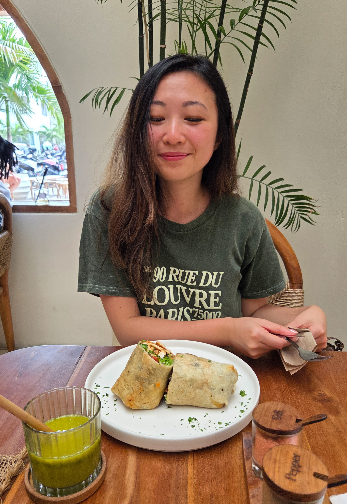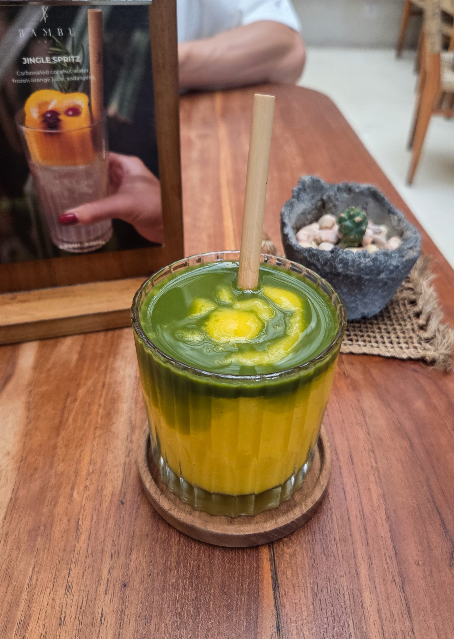 Bambu Cafe is located next to Bambu Fitness. All of their food is health conscious but that does not mean bland. My chicken wrap was full of flavor and this matcha mango slushy was to die for!