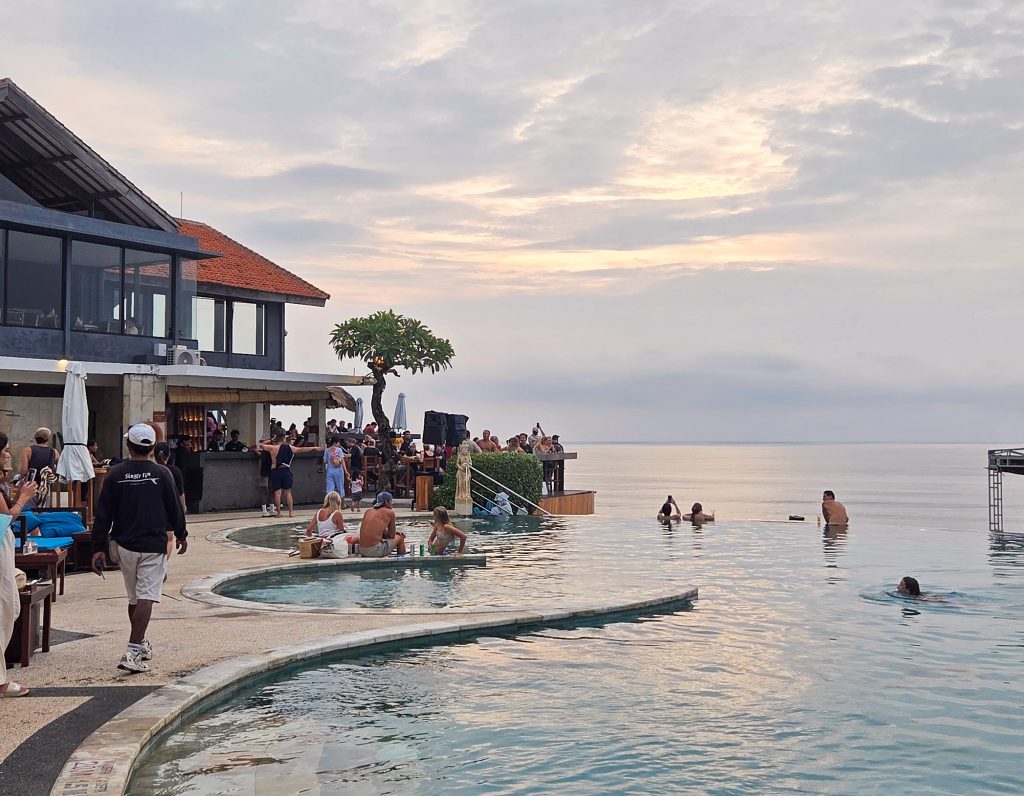 We went to Single Fin (an iconic spot) in Uluwatu to catch the sunset. The restaurant is massive, spanning 3 levels and there’s even an infinity pool onsite. We were able to snag one of the last seats along the edge but the view wasn’t the best as there was a metal tin roof right in front of us (see first photo). I really enjoyed watching the surfers in the ocean as they were some of the most skilled I’ve ever seen – even compared to Costa Rica! Personally, I wouldn’t recommend Single Fin as I thought the drinks were so overpriced and the view was only okay. Maybe give Mana or La Terraza a try instead?